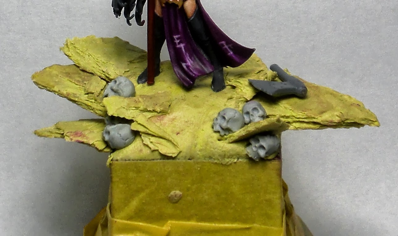 Pour le socle j'ai travaillé complètement différemment de la figurine, afin de poussé le contraste jusqu’à la manière de traité les textures . la figurine est très saturé niveau couleur, alors que le socle est plutôt sobre, ainsi que les victimes d'Angron.